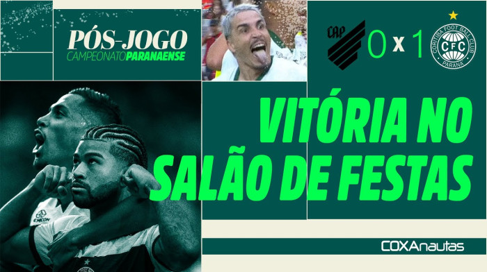 Com um gol de Lucas Ronier, Coritiba vence Atletiba e torcida Coxa comemora no salão de festas.