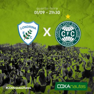 O Coritiba entra em campo nesta quarta-feira, 01/09, para enfrentar o Londrina, às 21:30hs, no estádio do Café, para defender a liderança na competição.