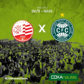 Em uma partida com cenário muito diferente do confronto do primeiro turno, o Coritiba enfrenta o Náutico, às 16:15hs, nos Aflitos, em Recife, buscando se manter firme na ponta da tabela da Série B. O jogo é válido pela 34ª rodada.