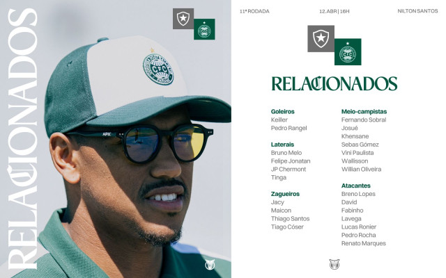 O atacante Keno com lesao muscular na região posterior da coxa direita, e o meia Gustavo com uma lesão nos adutores, não foram relacionados.