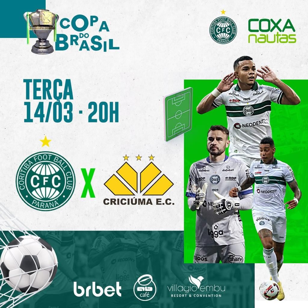 Passada a eliminação no campeonato paranaense, o Coritiba busca virar a chave na noite desta terça-feira, quando enfrenta o Criciúma, às 20h, no Couto Pereira, em busca de uma vaga na terceira fase da Copa do Brasil.