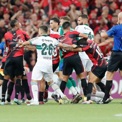 Atletiba da Baixada termina de forma lamentável, com pancadaria generalizada entre os jogadores.
