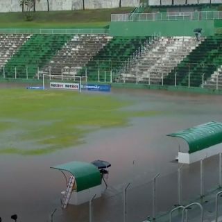 Após o primeiro tempo de muita chuva, que transformou o campo num rio, a partida foi encerrada por falta de condições de jogo.