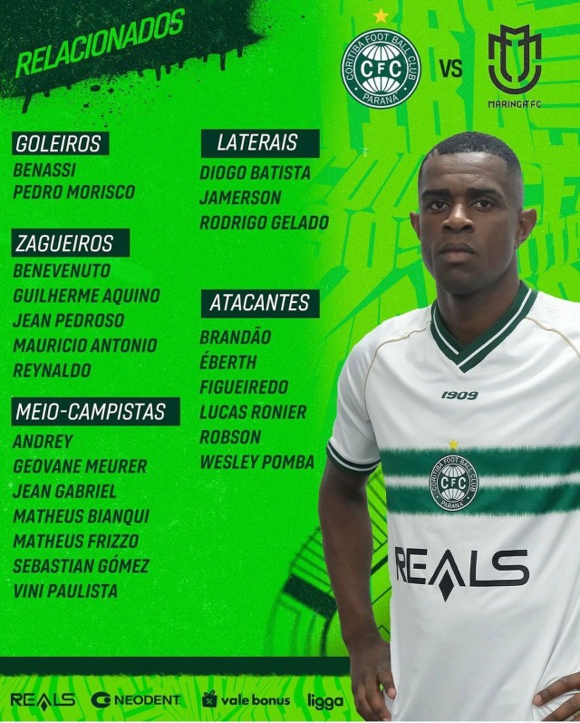 O zagueiro Marcelo Benevenuto é a principal novidade na lista de relacionados para o jogo contra o Maringá. Recém-contratado junto ao Fortaleza, o zagueiro poderá ter a oportunidade de vestir a camisa alviverde pela primeira vez.