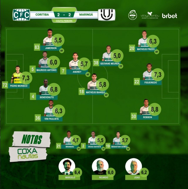 Confira no campinho abaixo a média de cada jogador, segundo as notas dadas pela equipe.